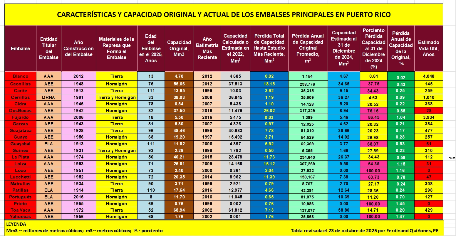 En Puerto Rico existen 36 embalses formados por represas en los ríos de la Región Montañosa Interior, así como dos (2) fuera del cauce pluvial en la Región Este. Estos embalses (particularmente los 16 mayores ilustrados en el mapa siguiente) son la fuente principal de agua potable en la Isla. Los embalses contribuyen el 68 % de toda el agua que la Autoridad de Acueductos y Alcantarillados (AAA) purifica y distribuye (sirviendo el 97 % de la población). Además, son la fuente principal de abastos de agua para riego agrícola en los distritos de riego del Noroeste (Guajataca), Sureste (Juana Díaz) y Suroeste (Lajas). Aproximadamente el 1.7 % de la electricidad que genera la Autoridad de Energía Eléctrica (AEE) proviene de unidades hidroeléctricas ubicadas en las represas de estos embalses. Los embalses son además centros con áreas recreativas y pesca deportiva.